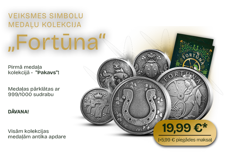 Izmantojiet šo iespēju jau šodien pasūtīt kolekciju "Fortūna". Pati pirmā medaļa kolekcijā ir "Pakavs". Kopā ar pirmās medaļas sūtījumu saņemsiet DĀVANĀ medaļu ar senlatviešu pārticības simbolu - "Jumja zīme" un skaistu kolekcijas albumu medaļu izvietošanai.